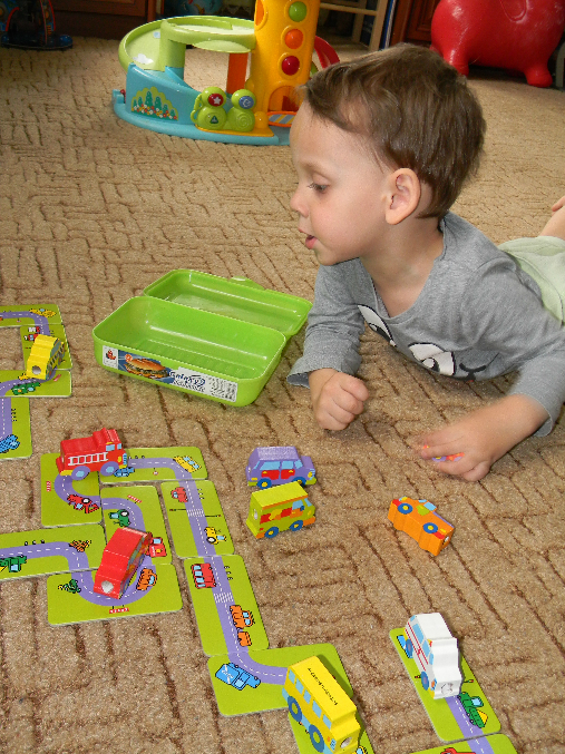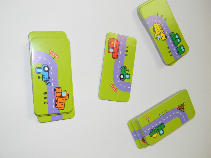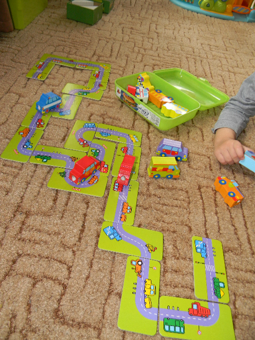 Но вот мой сын категорически отказался в них играть, пару раз начинал строить и бросал, как я только не пыталась его увлечь, но так как сами игры Кайе очень полезны,я решила найти что то похожее, поискав нашла и моему любителю машин, конечно понравилось строить дорогу для автомобилей, принцип понял сразу, сам играет, пытается испробовать разные варианты при строительстве, по кругу дорогу выкладывает, постоянно что то переставляет, переделывает в общем ребёнок доволен а мама тем более) Эта игра сделана намного качественней чем «Мосты и берега» . Карточки из очень плотного картона, как у дорогих игр типа джеко, сочные цвета, аккуратненькая коробочка очень плотная, позволяет брать игру в поездку. А ещё ничего не надо вырезать)) .