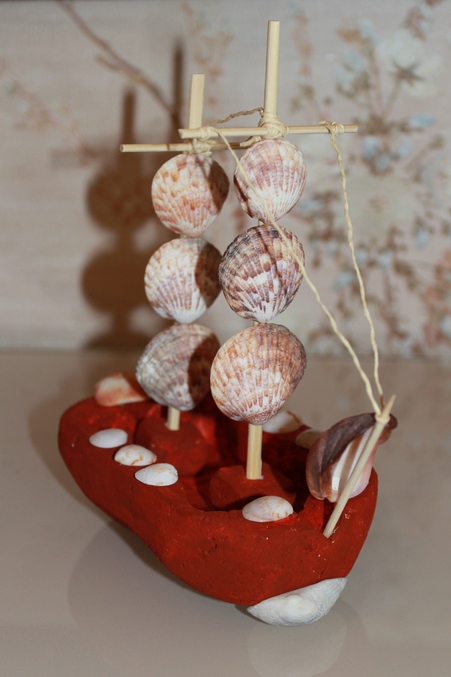 Следующую поделку даже не знаю как обозвать. Перебирая и делая разные поделки, Артём грустно сказал: Мама ракушки ведь должны быть на песке!