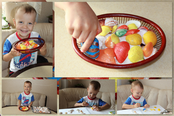 Артёмка очень любит рисовать и разукрашивать, поэтому некоторым ракушкам решено было придать побольше яркости))