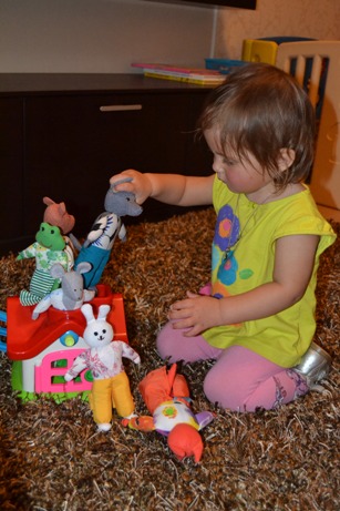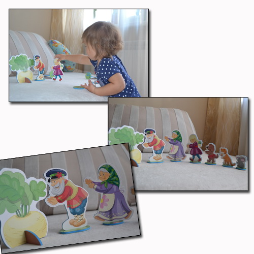 Появилась у нас совсеми недавно. Больше подойдет для деток постарше, но мы используем героев и для других сказок. Да и вообще у меня Настя любит просто так играть с резиновыми игрушками.