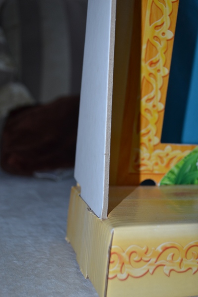 Конечно, я хотела напольную большую ширму, но увы, место не особо позволяет. Я начала искать что-то поменьше, но бабушка решила нашу проблему и подарила нам эту. Я ей довольна. Она достаточно компактная, стоит у нас за дверью. Мы ставим ее на стол и получается практически напольная конструкция. Материал - плотный - плотный картон, в основе - деревянная доска.