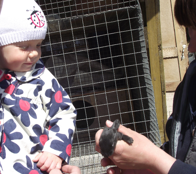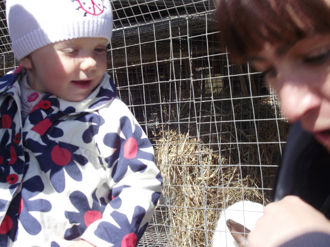 Нам вынесли маленького крольченка и предложили погладить, но наша трусиха не захотела))