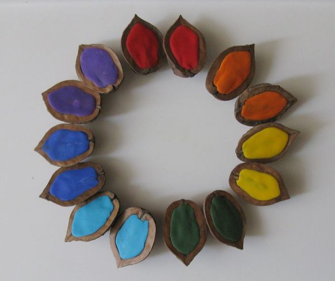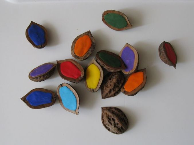 Самодельные игрушкиСделала ребенку мемори из скорлупок маньчжурского ореха. Половинки скорлупок ореховых+полимерная глина=?