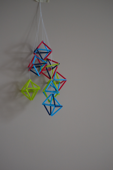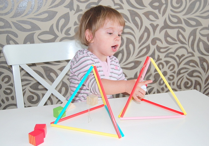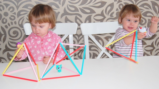 Особо продвинутые и рукастые дети и их родители делают какие-то из этих самых трубочек. Мы же ограничились парочкой пирамид и одним многоугольником, но девчонки все равно оценили даже такие простые в исполнении фигуры.