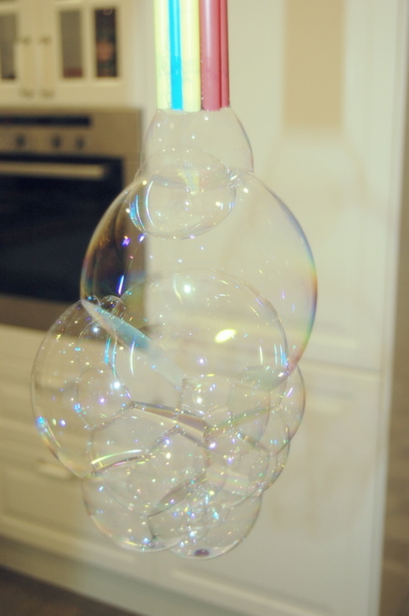 Чем медленнее дуть, тем длиннее может получиться "змейка". Думаю, что это развлечение больше подойдет для улицы или ванны.