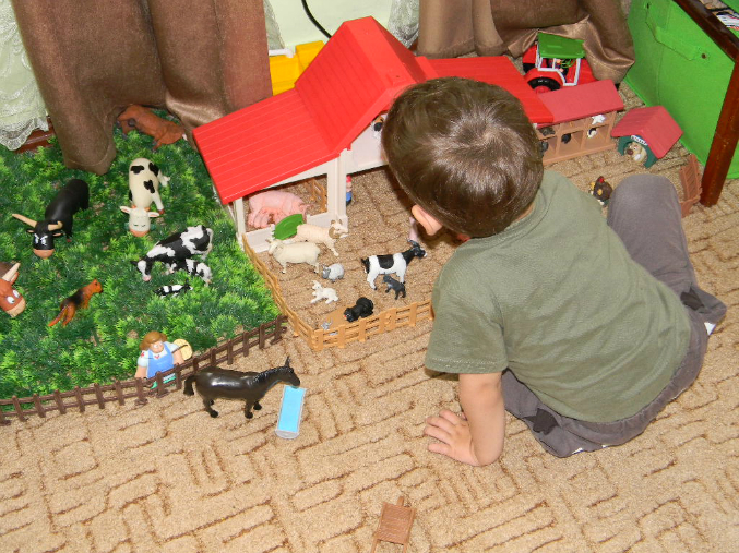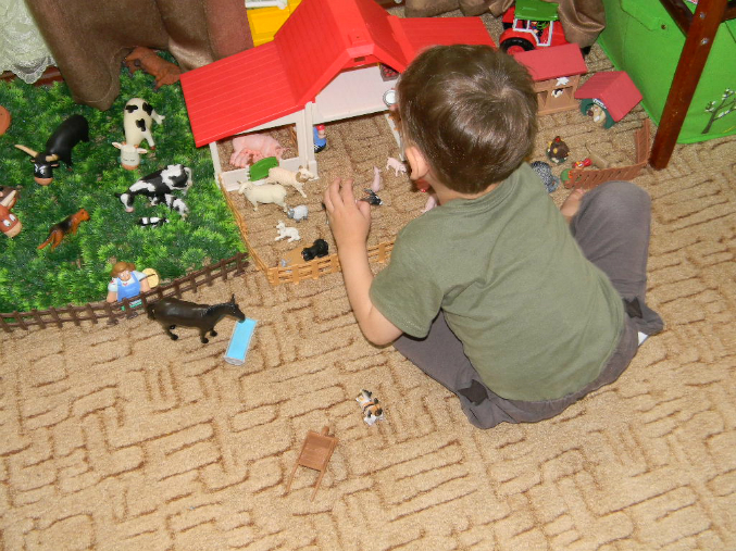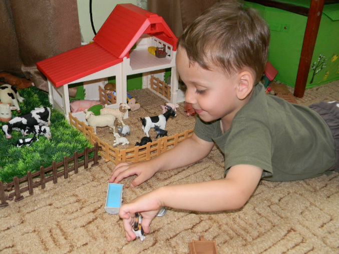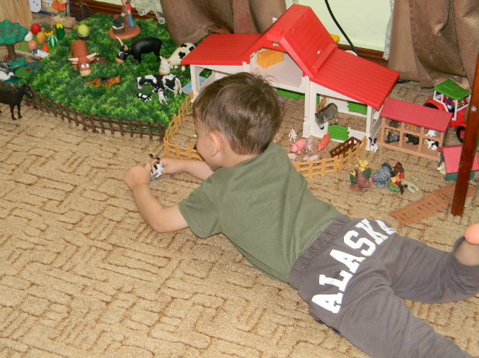 Санька может часа два и сам играть с фермой, очень любит, но и я не упускаю шанса поиграть с ним на пару, пока сын позволяет с ним играть, а то гляди через годик- другой меня уже и подпускать не будут)) надо ловить момент :))