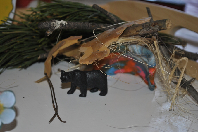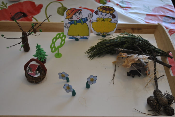 1) Началось все со сказки ( текст сказки и все, что для нее нужно есть в ТД, очень удобно, ничего придумывать не надо) Домика у меня не оказалось, сделала берлогу.
