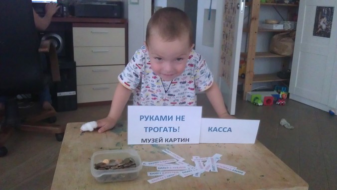 Игры и игрушки для детей от 2х-до 3-х летПервая выставка картин была посвящена Васнецову М.В.. Артём сам (по буквам) прочитал все большие надписи, оплатил билеты и внимательно с бабушкой послушал о самых известных картинах... Какое счастье иметь принтер и ламинатор!)))
