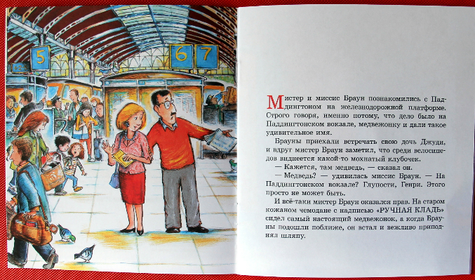4. М.Бонд. Медвежонок Паддингтон. А вот это тоже наша любовь :) И не только наша: по утверждению Википедии, сейчас в общей сложности существует около 25 миллионов книг о нём на 31 языке мира :) Я думала, что история покажется Фельке длинноватой (в маленькой и тоненькой книжке Азбуки 2012 г., которую мы выбрали для первого знакомства, всё же 32 страницы), но нет, он выслушал её целиком, а потом ещё, и ещё... Возможно, дело в очень грамотных рисунках - их, кажется, не так уж много, но они есть на каждой страничке и на них изображено практически всё, о чём говорит рассказчик (Фельке это важно, он ищет всё на рисунках). Книжка маленького формата, в очень приятном исполнении. Издание очень похоже на серию "