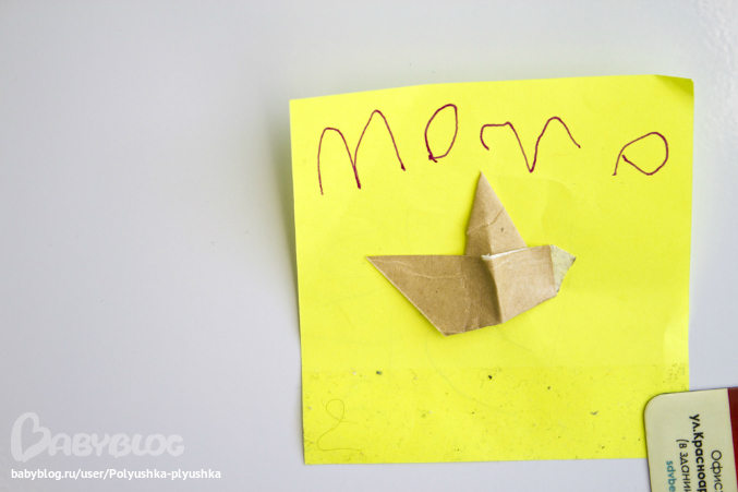 Плюша любит что-нибудь мастерить, моделируя бумагу. Получился у нее отличный кораблик, назвала его Момо.