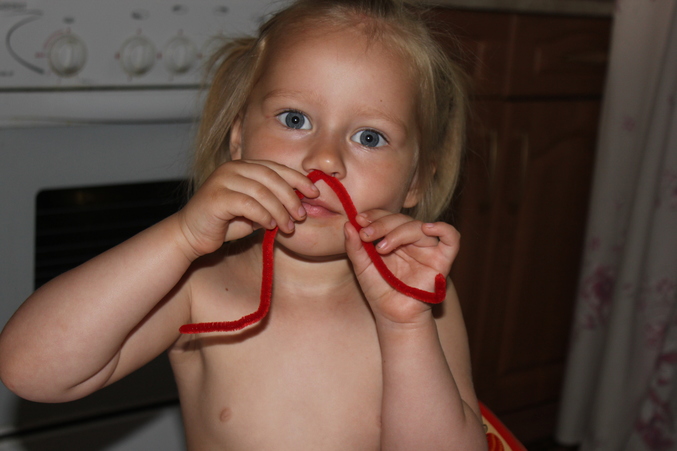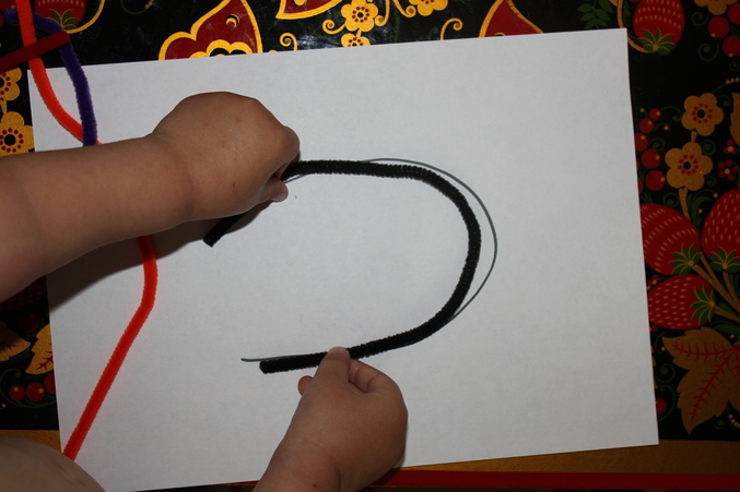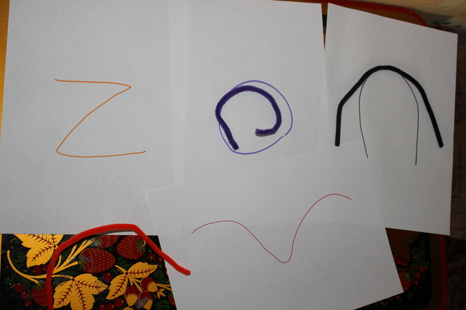 4. Согни синельную проволоку по образцу. С параболой, кругом Катя справилась легко, а вот Z и "птичку" так и осилила. Зато усы сделала )))