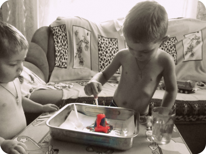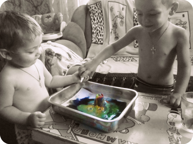 Разное (если затрудняетесь с выбором)Все уже, наверно, его делали, а мы вот только созрели. Чтобы и дети могли принять непосредственное участие вместо уксуса брали воду с лимонной кислотой. Добавляли красители различные, поэтому в конце под вулканом образовалась серо-буро-малиновая лужа.