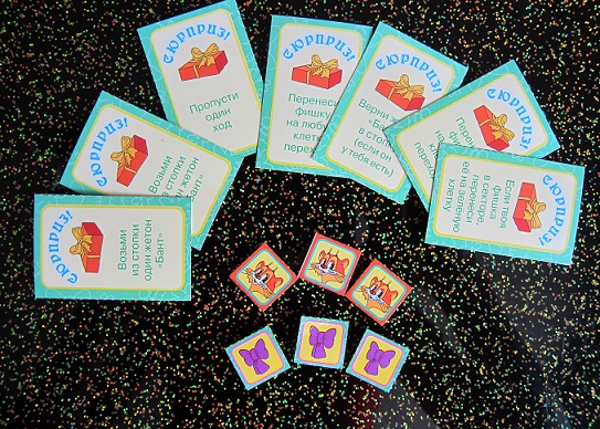 и карточки "Сюрприз", "Бант" и "Леопольд"