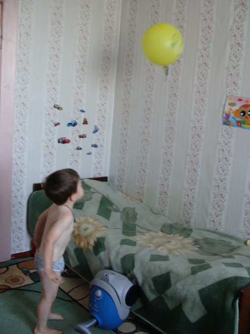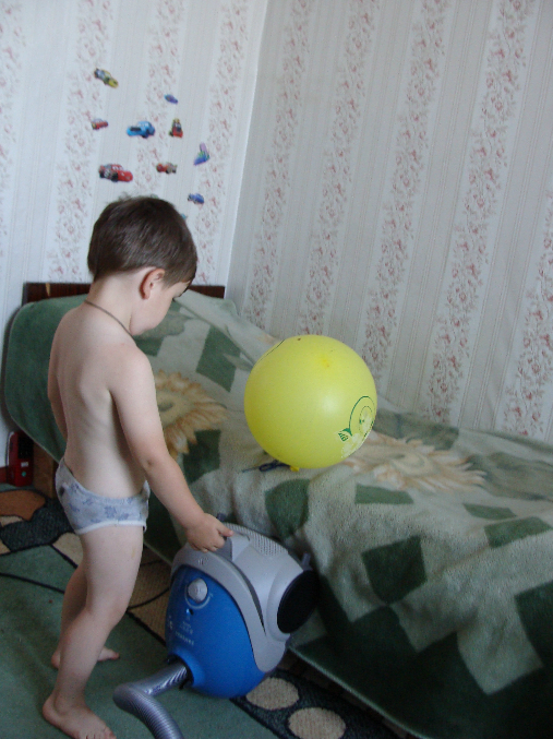 Вчера увидела в чьем-то дневнике, сегодня не помню...Извиняюсь! И если это кому-то важно, отзовитесь, укажу Вас здесь. Раньше встречала такой опыт с феном и шариком от пинг-понга, но как-то не вдохновилась. А от этого способа мы с Санькой были в восторге!!!!! Даже муж зашел посмотреть и спросил, почему шарик на одном месте держится и не улетает)))) Ответ ниже. А пока ставим пылесом отверстиями для выхода воздуха вверх, включаем, кладем сверху шарик и веселимся! (извиняемся за форму одежды, но у нас очень жарко в квартире).