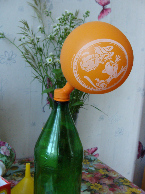 Мистер Умелец или Очумелые ручки (поделки, аппликации, интересные находки, идеи и задумки)Один мой добрый друг (Лиля, это ты))), посмотрев на наши опыты предложила сделать вот этот. Мы не стали откладывать это в долгий ящик))). Итак, бутылка, шарик, уксус, сода. Догадались, что получится?)