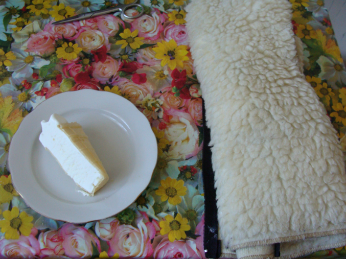 Проверим с помощью мороженого. У нас был один стаканчик. Поэтому мы его разрезали, одну половину положили на тарелку, другую завернули в чистое полотенце и укрыли шубой (у нас подстежка от зимнего комбеза).