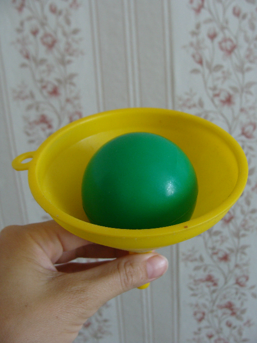 Для следующего опыта-фокуса нужна воронка и шарик для пинг-понга (у нас шарик из сухого бассейна). Переворачиваем воронку широкой частью вниз. Вкладываем в нее шарик и придерживаем пальцем. Теперь сильно дуем и перестаем поддерживать. Мяч не упадет! Для меня это было чудом))).