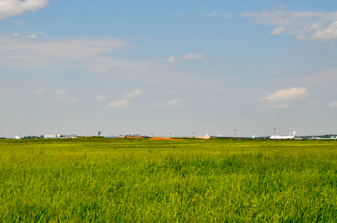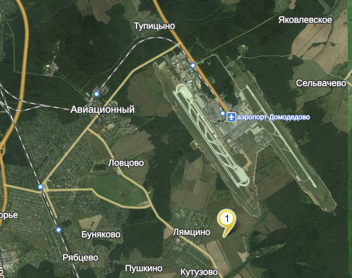 На велосипеде мы проехали около 4 километров по трассе и еще 1-2 по полю, под циферкой 1 на карте - это мы там сидели ) С ближней ВПП лучше всего видно самолеты, с далней они в лес уходят...