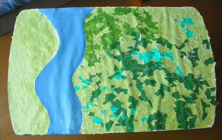 река нарисована краской, пулучилась слегка обьемная полянка и речка!