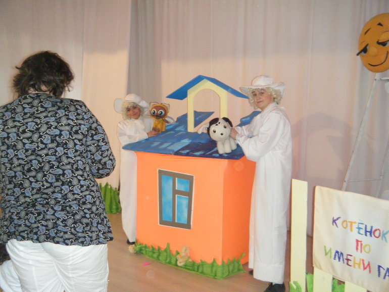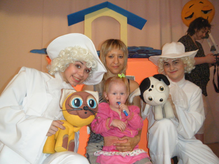 Пока я не особый ходок по детским театрам, поэтому не могу сравнивать. Сам спектакль длился около 30-35 минут, 10 минут была вступительная речь, рассказывали про правила, общались с детьми, разогревали их, хлопали в ладоши, стучали ногами и т.д. Само представление, на мой взгляд, было динамичным, я сама не успела заснуть, все исполняли 2 актера, девушка и молодой человек. В спектакле участвовали игрушечные котенок, щенок, собака, мухи, стрекозы, бабочки, пчелы,солнышко и черный кот. На сцене стоял домик, забор, на котором меняли надписи глав. В перерывах между главами происходил интерактив с детьми, чтобы они не заснули, махали руками, пели песни, довольно таки весело. В суть самого спектакля я, честно говоря, не вникала, мультика такого я тоже не особо помню, поэтому просто наслаждалась самим действием.