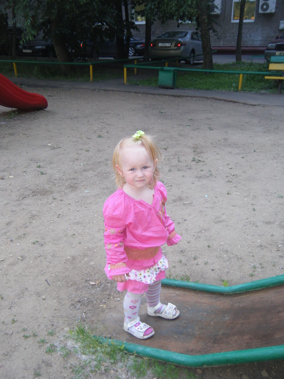 Около самого театра есть детская площадка, где мы зависали до и после дейтсвия, старая, но Алессия с удовольствием там рассекала.