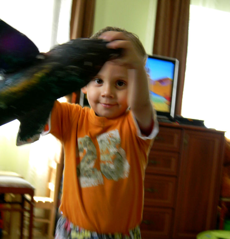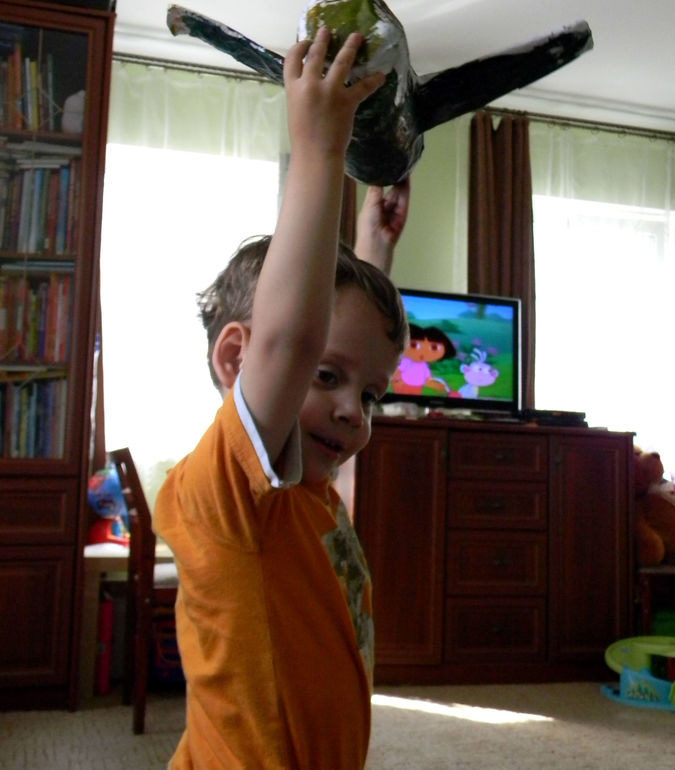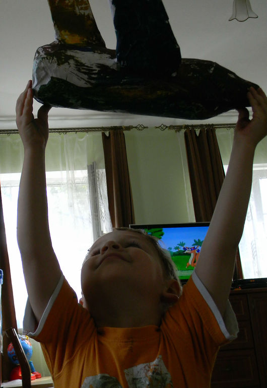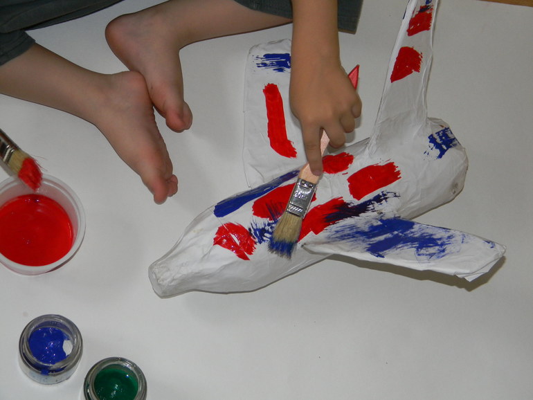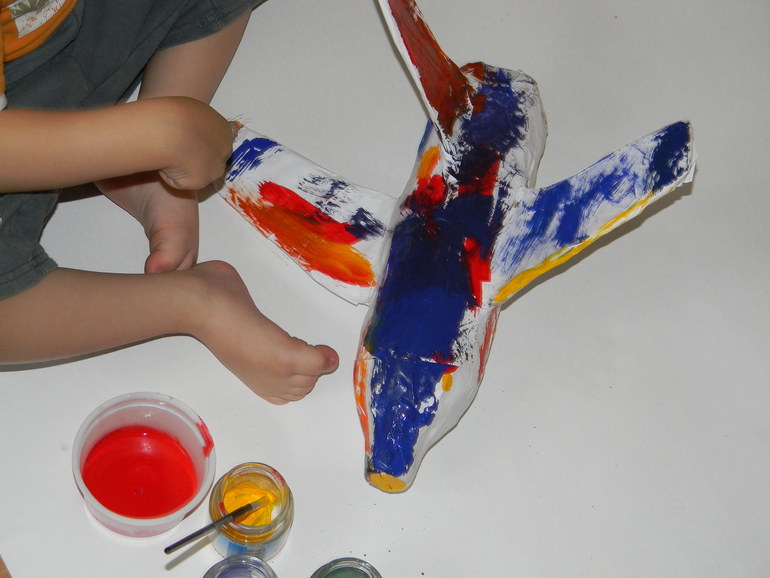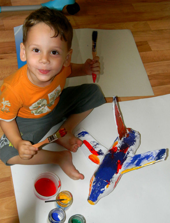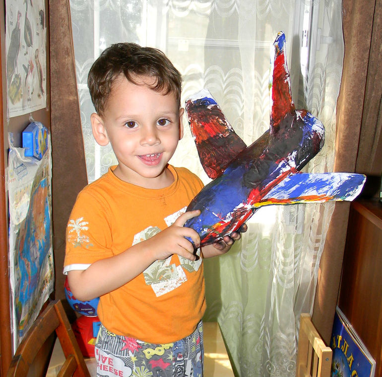 Столько радости у ребенка, он так гордится что сам раскрасил самолет, из рук не выпускает, показывает всем, гуляет с самолетом и даже спит с ним:))