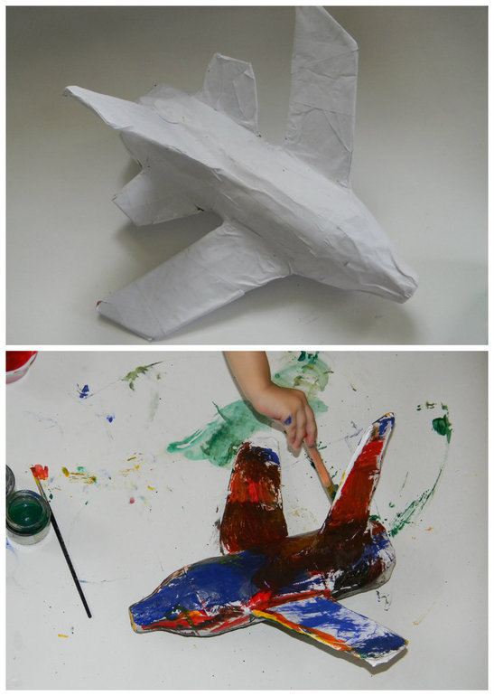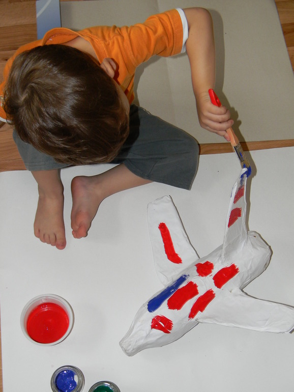 Идея не новая и не моя, многие так делают, решили и мы покрасить самолет (я кстати сделала 4 самолета), к нам каждый день соседские детки приходят, будет чем их занять:) буду еще ракеты делать и подводные лодки:)