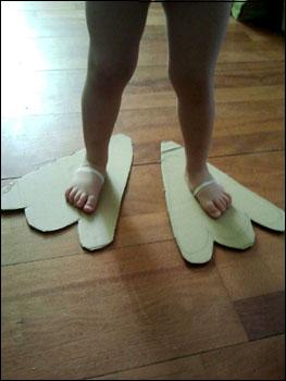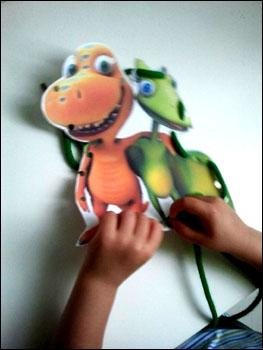 Потом Никита сам смог почувствовать себя динозавром при помощи вот таких импровизированных лап или как он их назвал "ножек" :) Он клацал зубами и кричал: "Арррр!