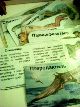 Рассмотрели карточки с изображением динозавров (их мы разглядывали в теч.всей недели),основных динозавров запомнили,прослушали про них информацию: