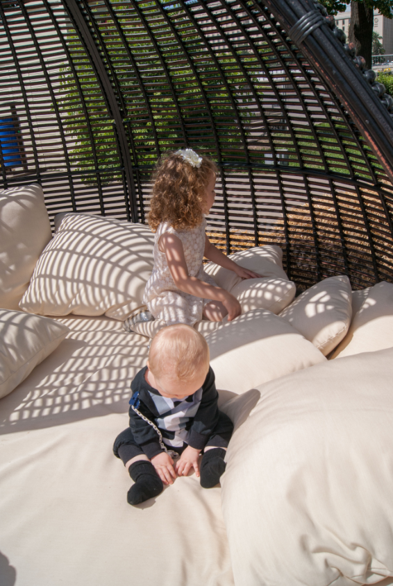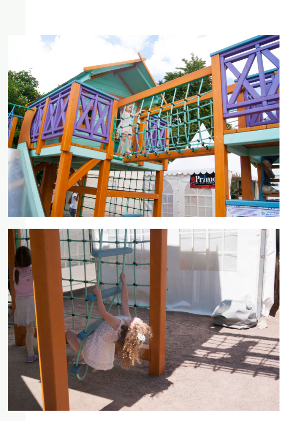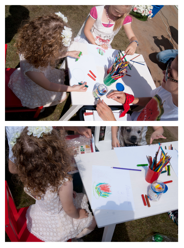 Старшая же....Набегалась, рисовала арбуз, за который потом подарили мяч, прошла мк по рисованию на пряниках(100р), ела пряники соответственно, пила оочень вкусный лимонад (те же 100р), лазала и валЯлась на всех композициях.