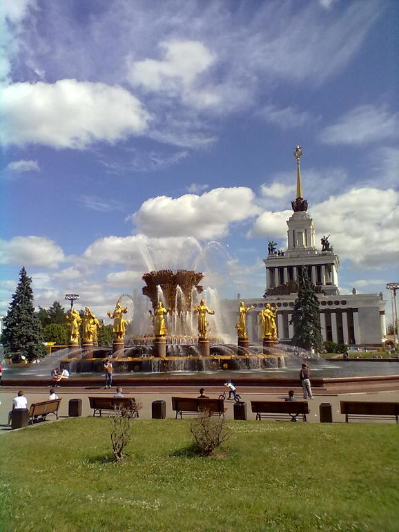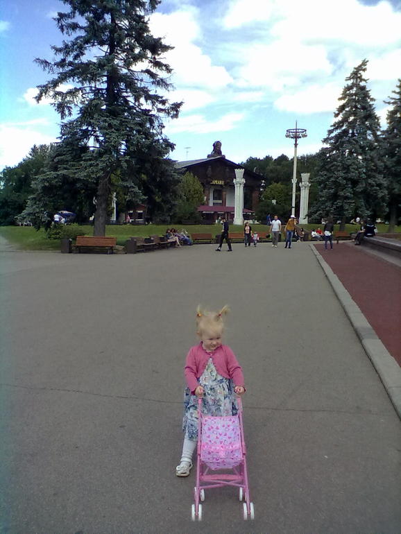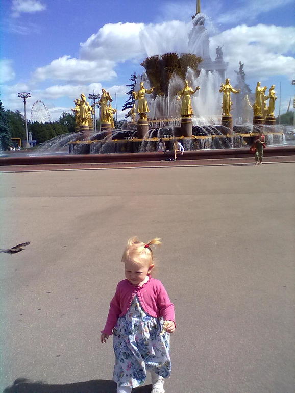 На этом нашу культурную программу на день я посчитала закрытой. И мы пошли наслаждаться ввц. Была я там наверно лет 15 тому назад и по моим впечатлениям ничего особенного не помню, никаких красот я тогда на углядела. Тут же я ходила и фоткала, ну очень красиво. Один минус я не нашла ни одной детской площадки, платные аттракционы, каталки, лошадки, рестораны, кафе бери не хочу, а вот чтобы как в Сокольниках все для детей и бесплатно такого я не увидела, может правда и есть, я не просто не знала куда идти. Еще, конечно много машин, они везде практически ездят, мотоциклы и мопеды тоже есть, так что в этом плане расслабиться и отпустить ребенка особо не получалось, приходилось орать.Специально спросила явно у местных с детьми есть ли тут площадки, никто мне ничего не сказал. Поэтому мы просто бегали у фонтана, благо моя детка это обожает, возили свою коляску, закусили булочкой и тут на мое удивление моя принцесса вдруг резко храпанула прям в коляске. Это было уже не по плану….ну что делать, тогда я пошла искать какой нибудь ресторанчик без громкой музыки и нашла. Там мне принесли борщ, кофе, дали 2 пледа и я сидела в полном одиночестве на веранде, попивала кофе и ловила кайф, слушая лаундж.