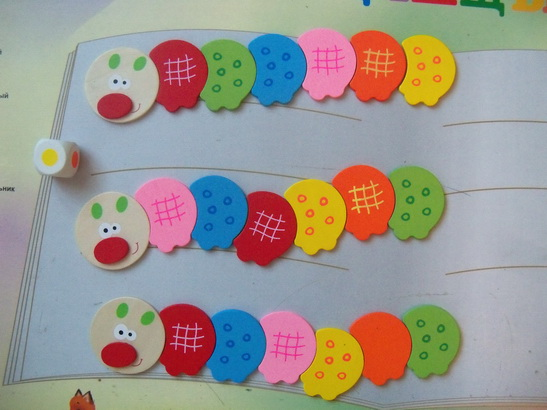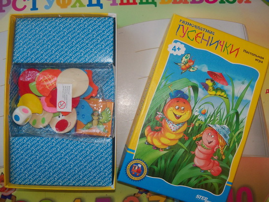 Игра интересная, причем не так интересно играть вдвоем (хотя тоже ничего), лучше втроем или вчетвером. И, в отличие от "Разноцветных гусеничек", ребенок не вырастет из нее быстро, можно предложить и пяти- и шестилетнему ребенку.