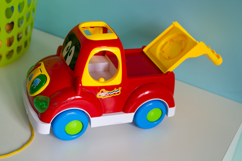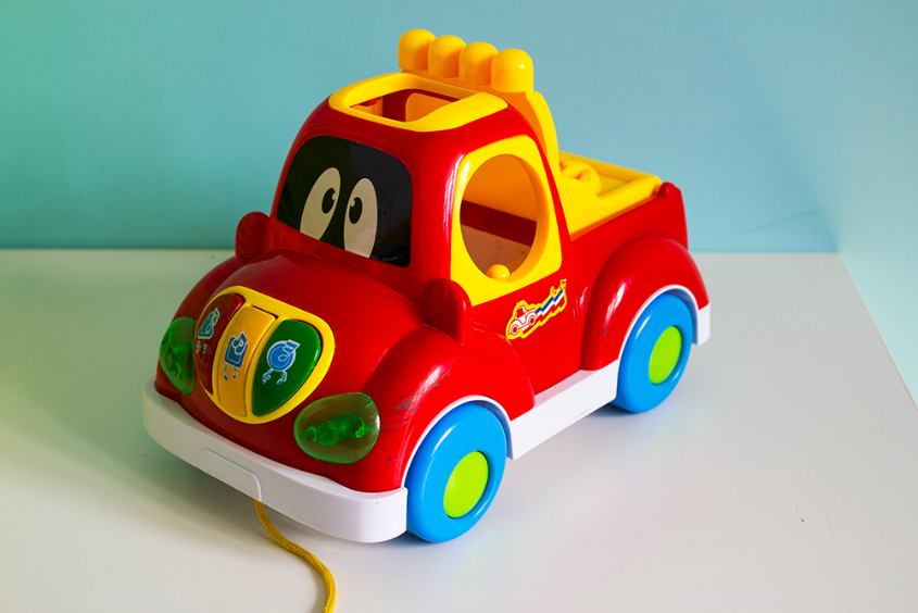 Самая первая машинка-сортер, музыкальная, со светящимися элементами. При попадании фигуры в отверстие, произносится название фигуры. Также, произносятся основные цвета и просто играют песенки. Русский и английский режимы. Качество отличное, фирму не помню.