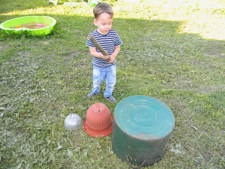 Барабанили по кастрюлям (Саша посмотрел свой любимый мультик Рори гоночный автомобиль, там крот барабанил по кастрюлям, вот и Санька захотел повторить)