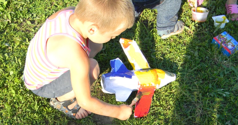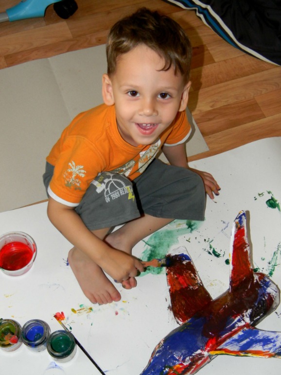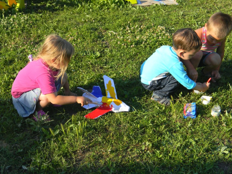 Раскрашивали самолеты, сам и с друзьями, с друзьями даже веселей:) Благо мама аж 4 самолета сделала:))