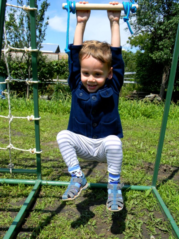 С удовольствием занимались на комплексе который наш папа сделал ( золотые руки!) .