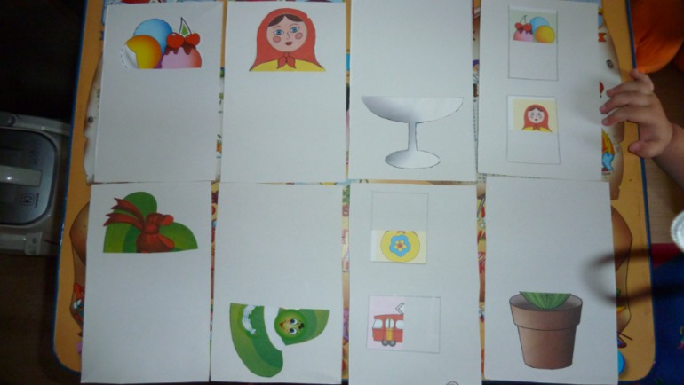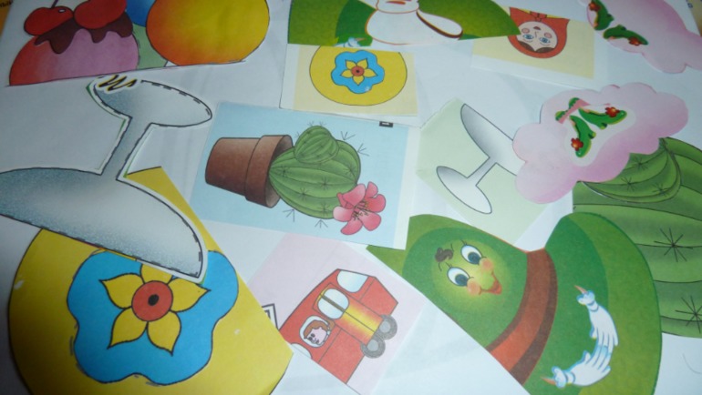Мистер Умелец или Очумелые ручки (поделки, аппликации, интересные находки, идеи и задумки)Дочка очень любит все клеить, приклеивать. У нас скопилось уже много использованных детских развивающих книжечек и журнальчиков. Выбросить как то жалко))), но и хранить вроде тоже смысла нет. Поэтому я решила вырезать из них картинки. Разрезала пополам (потом попробую на 3 части разрезать - с этими дочка справилась очень быстро) и приклеила на картон: