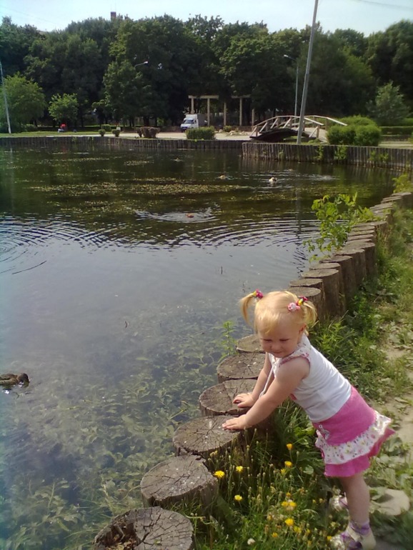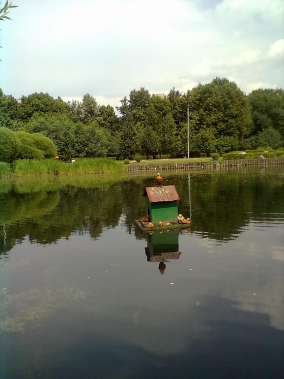 Есть 2 пруда, там очень много уток, утки бегают также и по ближнему
