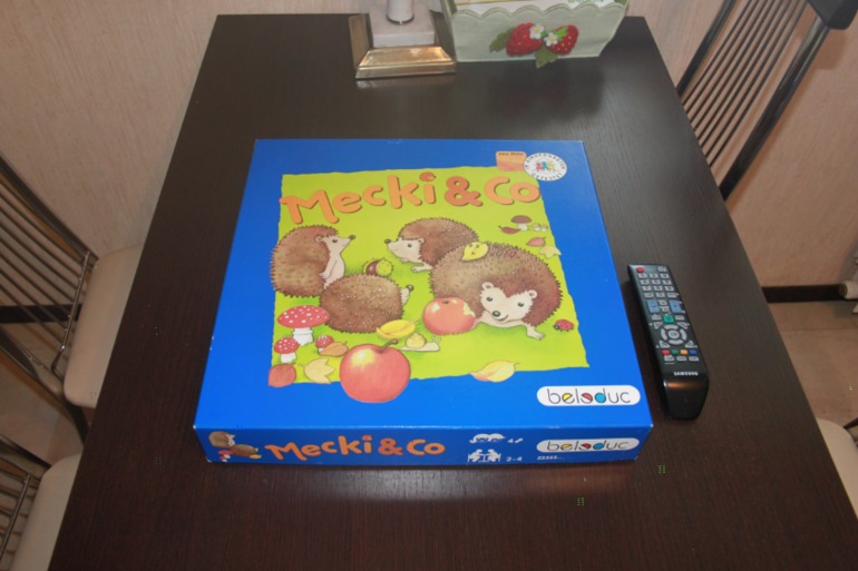 Игровое поле деревянное, с изображением четырех ежиков. Соответственно в игру могут играть от 2х-4х человек.