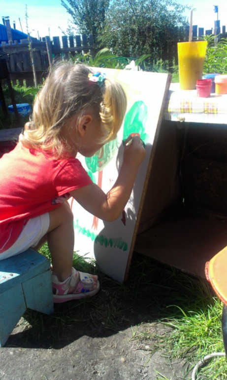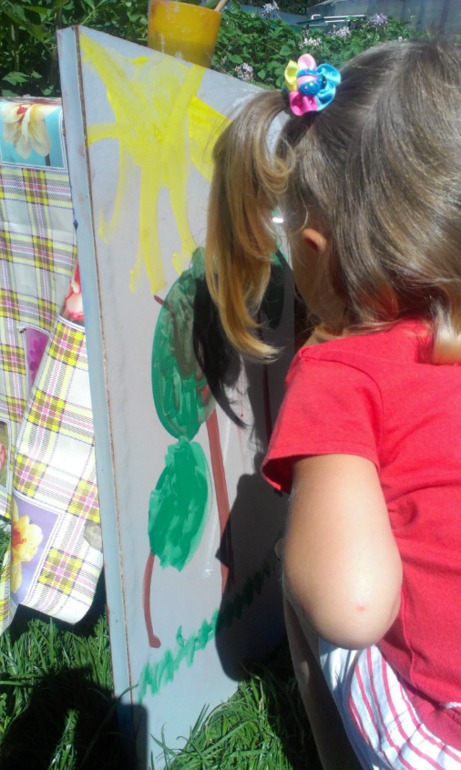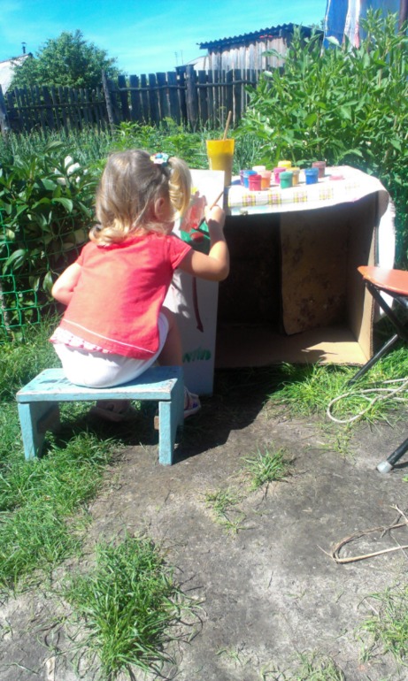 Сейчас мы отдыхаем у моей мамы. Покупать мольберт смысла не вижу. И вот что мы сделали....