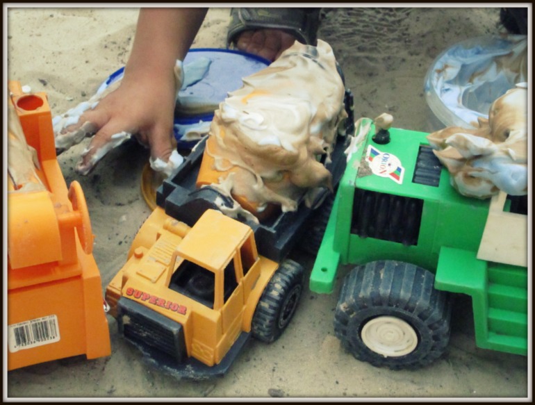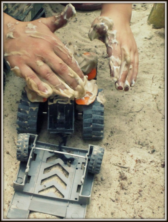 Подвижные игры и спорт ( зарядка, игры на улице и в в воде, танцы, игры с мячом и.т.д.)Устроили на улице автомойку. Денис был счастлив. Паша не понял, зачем нужно пачкаться. "Грязь" делали из подкрашенной пены для бритья.