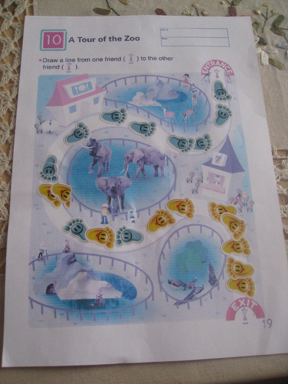 потом медвежонку дорогу к маме надо было выложить . дорога была из ракушек..тут наши дорожки уже были совмещены ...выкладывали в два этапа..вначале горизонтальную дорожку, потом вертикальную..и мы немного поиграли. вначале софия говорила мне к кому медвежонок пойдёт в гости и я шла по дорожкам или прямо или поворачивала на право или на лево..потом я говорила и софия шла..