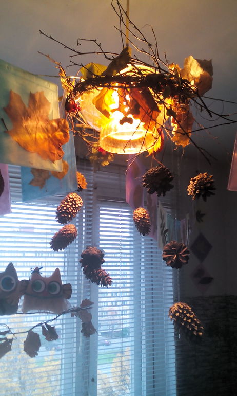 Получилось здорово - фотографии не передают того волшебного ощущения, которое создают гирлянды из листочков ,которые постоянно плавно покачиваются, кружатся....Настоящий листопадик, как говорит дочка!))