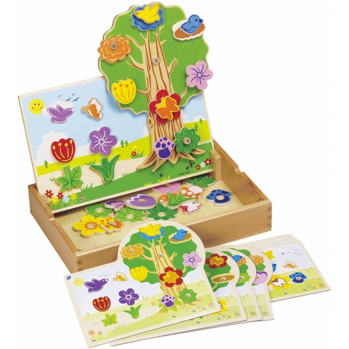 Тут надо украшать дерево цветочками, бабочками, птичками. Все на магнитиках.