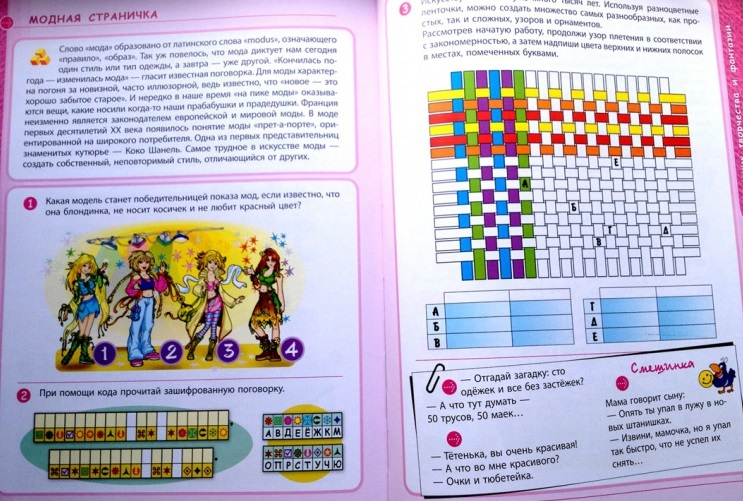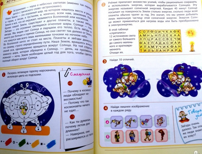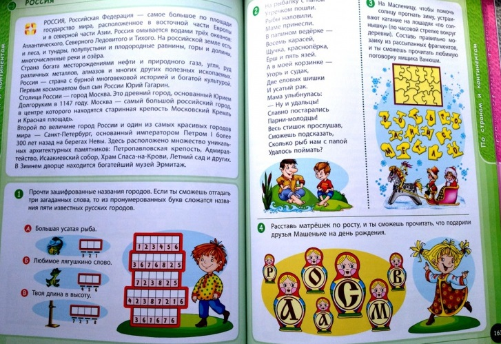 Книга поделена на разделы, в которых изложены полезные сведения из разных областей знаний, и задания предлагаются на соответствующую тему. Листая страницы, невольно обращаешь внимание на какую-то нестандартную, веселую подачу задачек, лабиринтов, буквомешалок и других увлекательных головоломок.