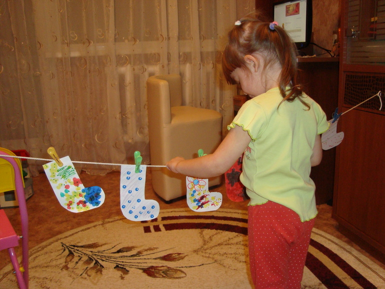 Нарезала из бумаги носочков, детям так понравилось их разукрашивать, что пришлось еще носков подрезать.