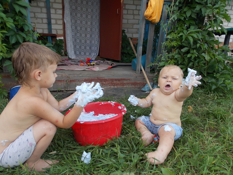 - Любуемся, показываем папе, все радуются и кидаются делать еще! Пока не заканчивается вся пена!