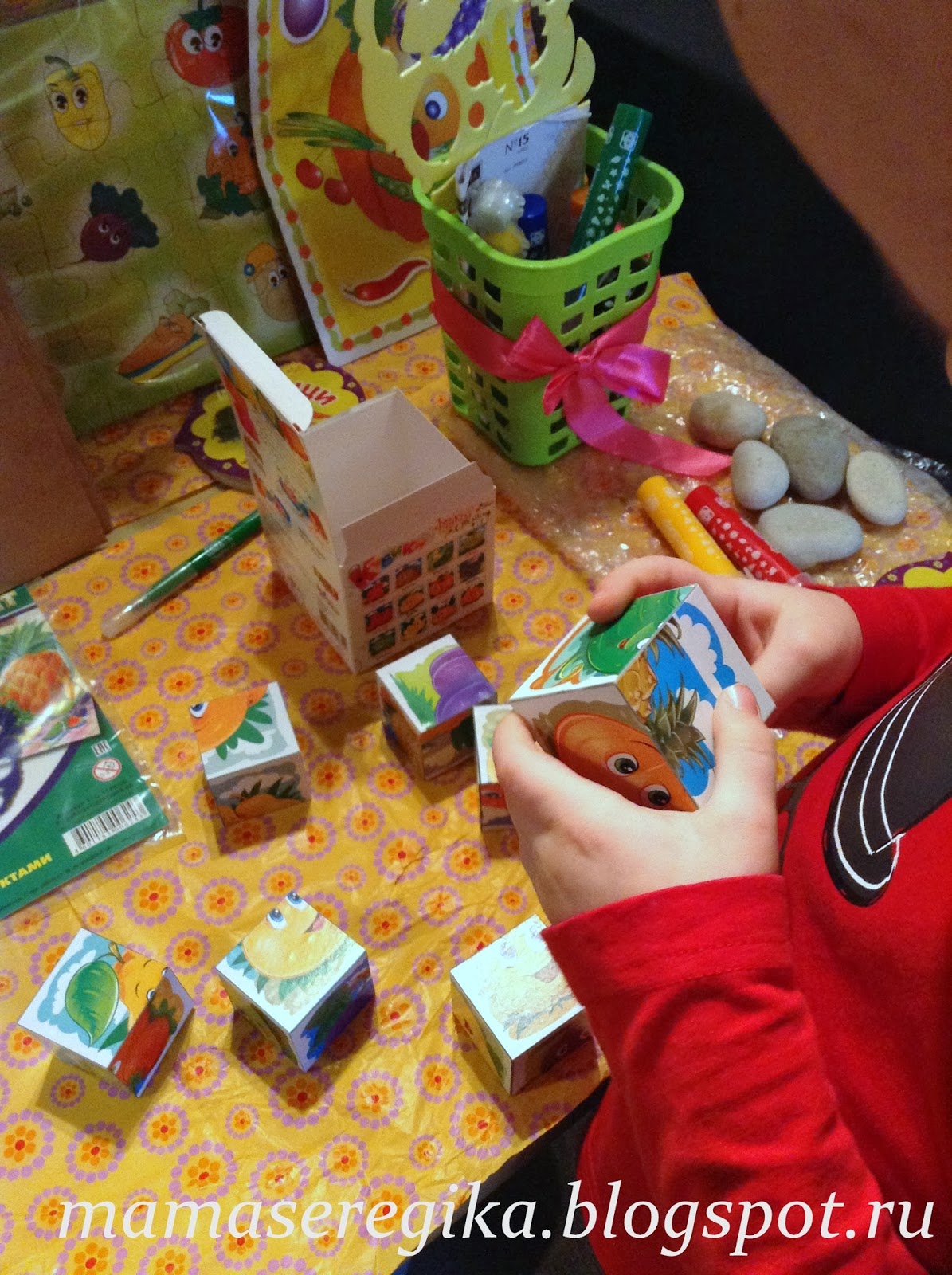 очень понравился набор кубиков с фруктами и овощами, яркие картинки, которые не сложно собрать, а это так приятно ребенку, когда что то получается сразу хорошо.