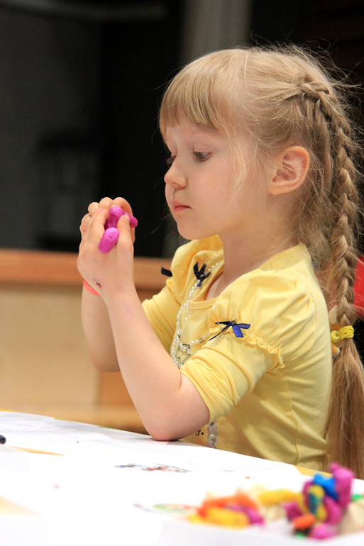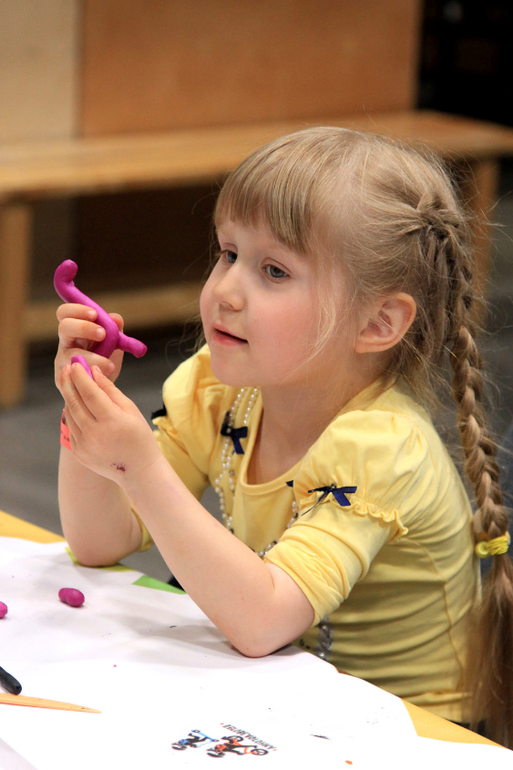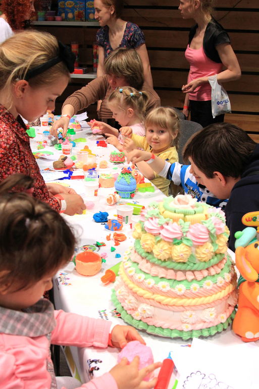 Мастерская Play-doh. Санька лепила тортики, кексики, украшала их. Испытали в действии игрушки этой фирмы. но шаблонная лепка, использование трафаретов Сашке не нравится. Дома есть один из наборов, который был на столе, так доча в него почти и не играет, готовые штучки-цветочки-ягодки ей выдавливать неинтересно. а вот сам пластилин любит нежно, поэтому и за столом много времени провела. Помогать себе не давала, отгоняла меня всеми силами. а мне же тоже полепить хотелось… :))