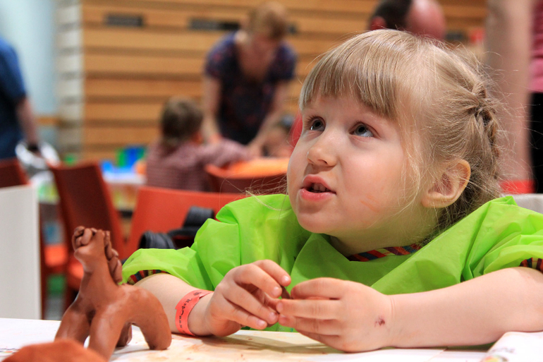 Было очень комфортно. Несмотря на количество детей (и особенно их взрослых) свободные места за столами для мастер-классов были всегда. Не было очередей, толкучки, если понравился мастер-класс - сразу можно присоединиться, получить внимание педагога, материалы и неограниченное время на творчество, никто никого не подгонял, не торопил. Можно было выходить и возвращаться, мы уходили покушать, а потом снова пришли лепить.